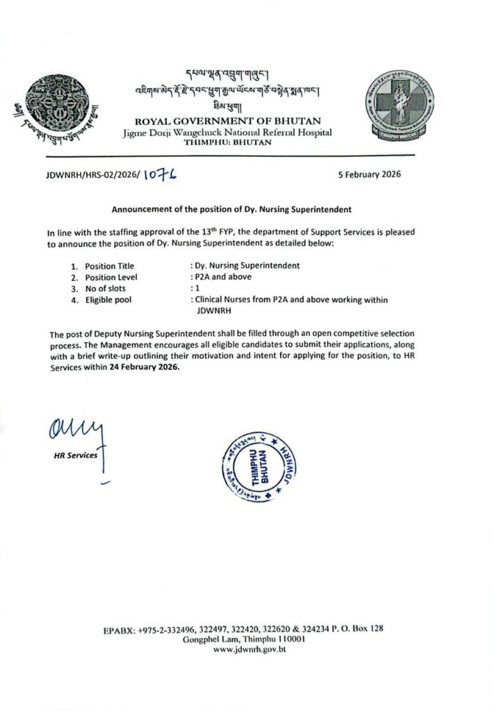 February 5, 2026| Vacancies| Jigme Wangchuk